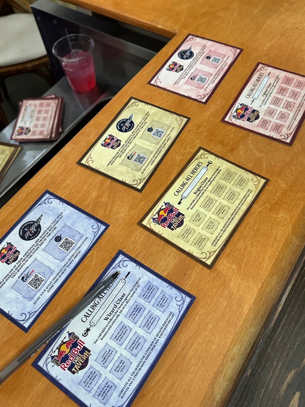 Red Bull went all out with the RPG theming in the Red Bull Tavern. Adventurers could choose Wizard, Rogue or Fighter quest cards with challenges to check off in the tavern, like checking out the board game library or defeating a classic monster (this wizard only rolled a 3 to attack the chimera)—all while sampling free Red Bull.