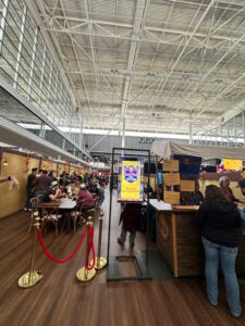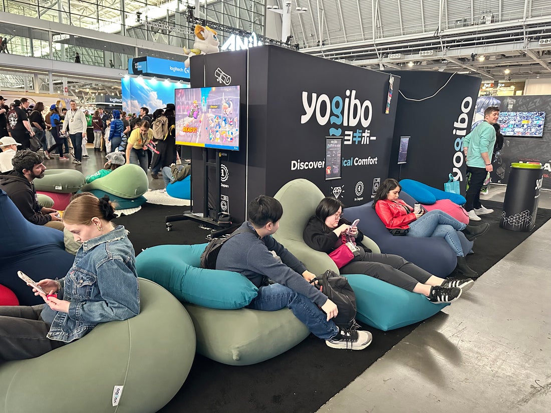 Yogibo bean bag chairs offered congoers a place to sit and relax in the center of the show floor, plus they could try their luck rolling a d20 to get a chance to win prizes (we rolled a Nat 20, IYKYK).