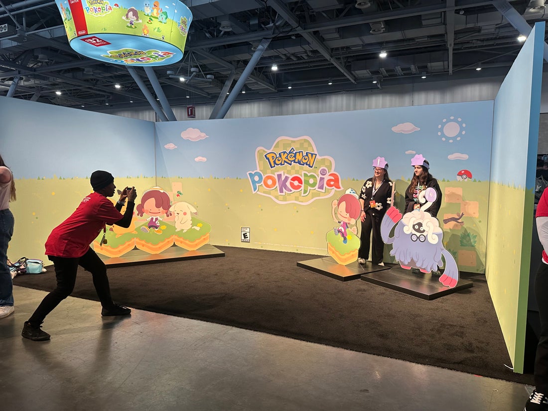 Nintendo brought the biggest footprint to the show floor and gave attendees the opportunity to try out three new game properties on Nintendo Switch 2 consoles, including Pokémon Pokopia, Super Mario Bros. Wonder and the upcoming Pokémon Champions. At two photo ops, participants could don a Ditto hat or climb into a Super Mario Bros. Wonder pipe, complete with movement and sound.