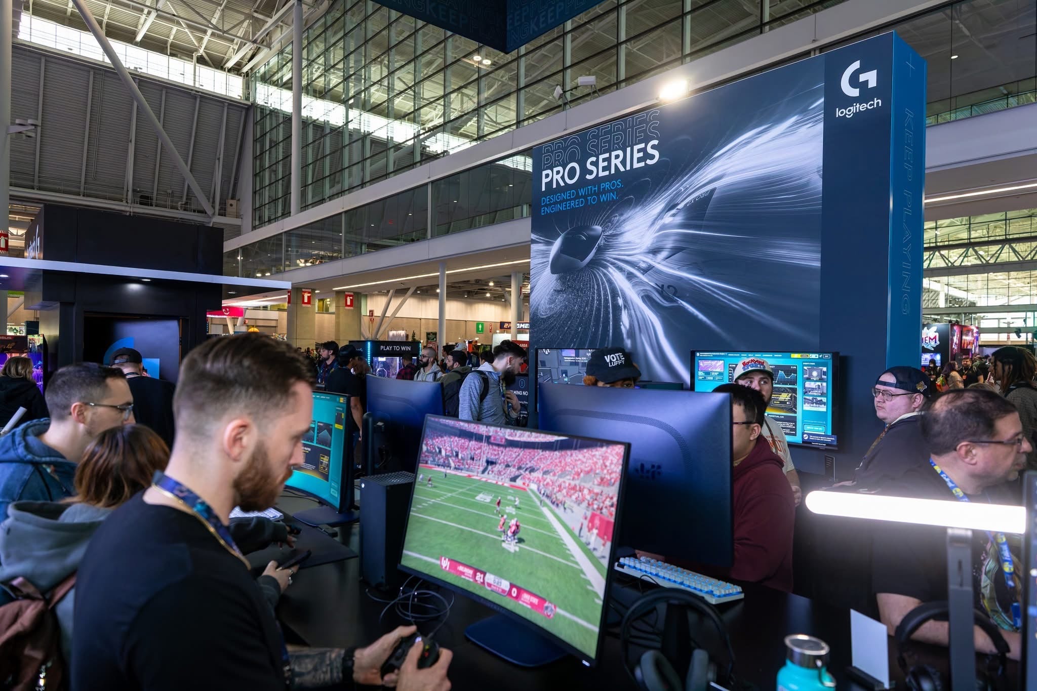 Tech brand Logitech showcased its line of PC and console gaming gear, Logitech G, with a special focus on its Pro X2 Superstrike mouse. Attendees tried their luck to get the “winning click,” which tested how fast they could click with the new mouse. Logitech also had streaming installations, a SIM racing setup and a claw machine game.