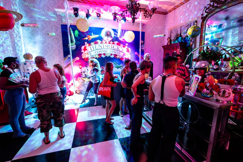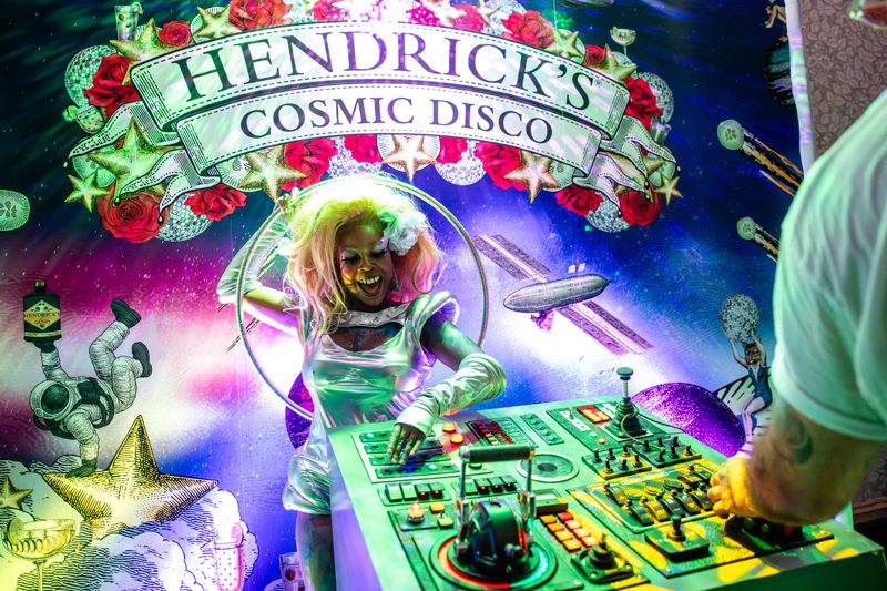 “If the theme was intergalactic this year because of budgets, we were like, how do we leverage something we already have going on, which was our Club Cucumber campaign, which is in essence, if Hendrick’s married a nightclub with a cucumber patch,” Henderson says. “It’s like, if the overall theme of this next party is outer space, and we’re limited on budget, we already have assets for the club, let’s take the club to outer space. And that then gave us the Cosmic Disco.”