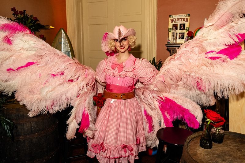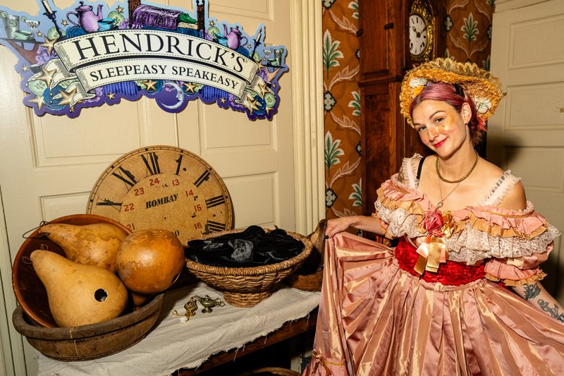 Consider the Tropic Saloon, which was a combination of a tropical tiki bar and a Wild West tavern featuring a Western female character who carried a cucumber in her gun holster, and was simultaneously dressed as a flamingo. Or the Barricade, a mashup of the Roaring Twenties era with a Hendrick’s-themed carnival, featuring a cucumber-tossing game, a rosy ring toss, a tarot card reader, rose petal-picking, an oyster bar and the brand’s version of gambling. And over in the Sleepeasy Speakeasy, attendees had to wait in line to get into an experience spanning a big-band orchestra performance, a medieval-style feasting hall and a bed with a stuffed alligator on it.