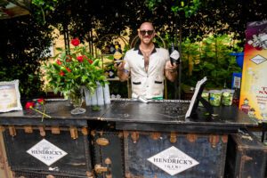 “There’s a lot of strategic thinking on, yes, telling a story with the experience and being rooted in Hendrick’s, but also the things that the consumers want,” he says. “They want swag. They want free things. They want air-conditioning. They want to be able to sit down. They want shade. They want crushable drinks. They want to be able to take photos. They want to create FOMO moments. They want to create memorable moments. So we try to answer for so many things, and that finally contributes to us creating something pretty amazing.”