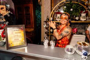 The multiroom Time Traveler’s Tavern experience served as a free-flowing journey through various intergalactic portals, where attendees encountered a series of unexpected mashups, as well as top-tier bar teams whipping up craft cocktails. Even the background music featured a medieval-style band playing hip-hop songs.