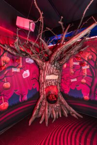 When attendees first arrived, they were welcomed by mischievous Hi-Chew mascot, Chewbie, dressed as a witch and stirring a cauldron. Then, they journeyed through a series of rooms, each inspired by a signature Hi-Chew flavor, and including activities like a claw machine and oversized Lite-Brite-style installation. And along the way, they could partake in candy-themed challenges, munch on samples, snag merch and work to solve the “ultimate flavor mystery” before it was officially revealed on Halloween day.