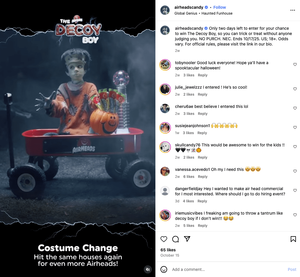 Turns out it’s not just us that wishes trick-or-treating was acceptable for grown-ups. According to OnePulse research cited by Airheads, 87 percent of adults think it’s weird to participate in the activity alone, despite having cherished it as kids. The brand’s solution? Decoy Boy.