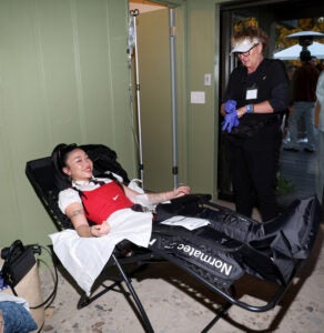Inside the glass-domed penthouse, attendees enjoyed pickleball matches; mini golf; a bar with a curated menu of themed Cîroc cocktails, such as the Pickled Limonata Spritz; beats by dj Rae Sada; and partner activations, including Remedy Place B12 shots and the Hyperice Recovery Zone with massage chairs and tools.