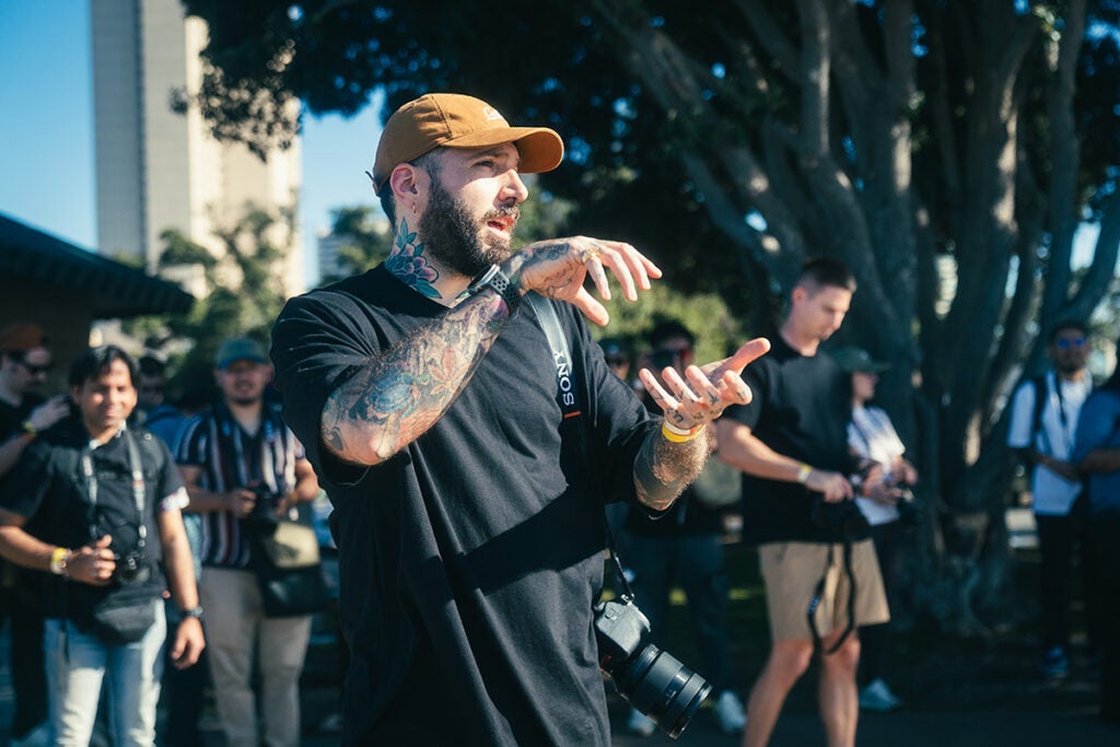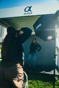 On-site, Alpha Pro Support team members greet users and provide deep product expertise, while users mingle with like-minded creators. The centerpiece of the activation is a branded Airstream trailer, which houses product showcases with large displays of the full-frame lenses and Sony shooters. Attendees are encouraged to put the lenses on their camera bodies, figure out how they work, how heavy they are, and to be as hands-on as possible. They can then head over to the gear checkout and sign up for hourlong, guided photo walks to take the products for a spin.