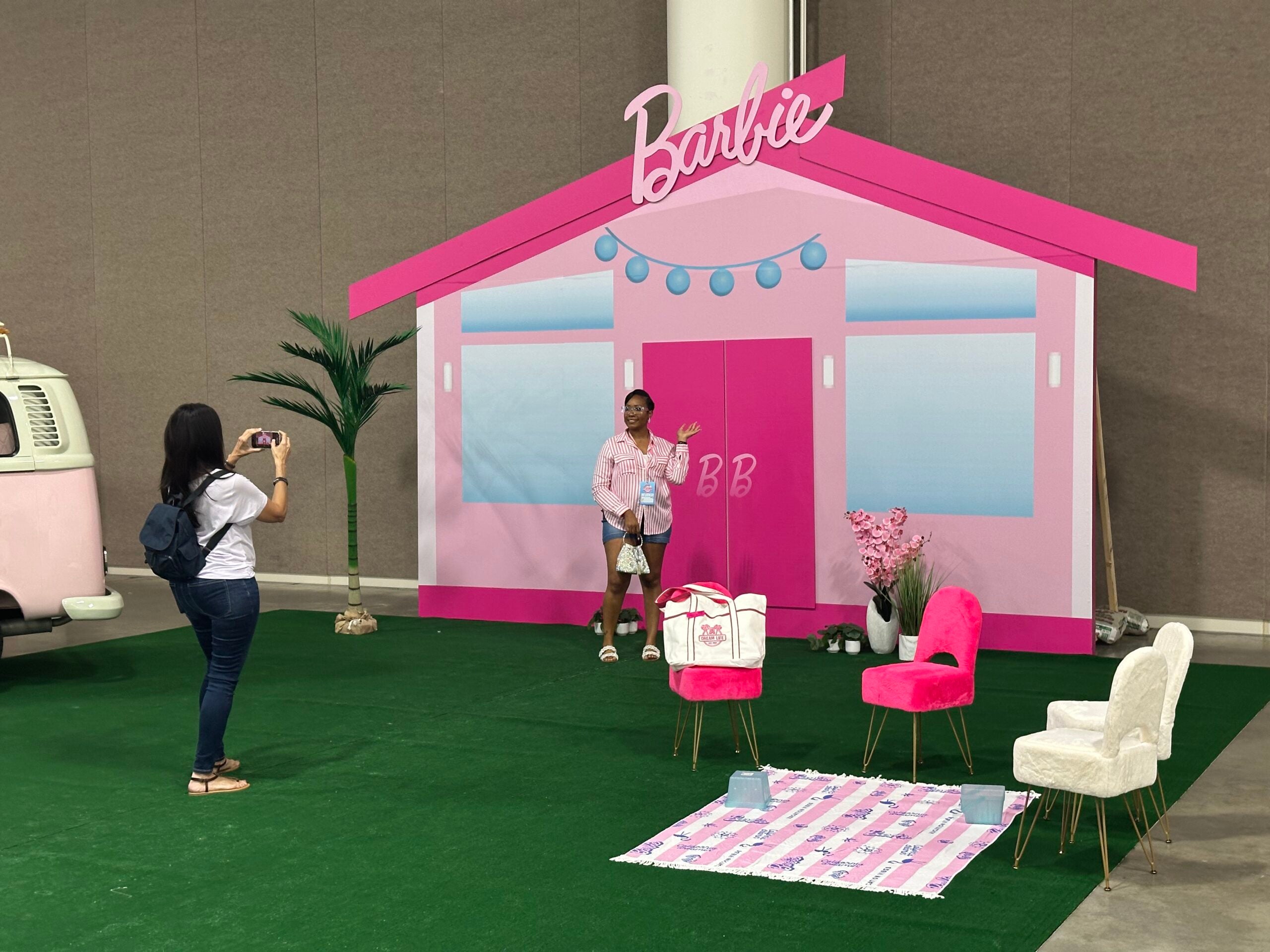The Dreamhouse was, in reality, a one-dimensional façade of the front of Barbie’s home, along with an area of faux grass, picnic blanket, a few chairs and a custom-designed VW van that attendees were not allowed to step inside.